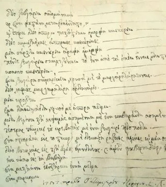 Απόσπασμα από τη λίστα προίκας του φύλλου του Παπά Δημήτρη Σκλάβου με ημερομηνία 1737*